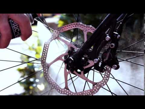Spray Muc-Off Disk Brake Cleaner on the disk and pads and wipe off any residual fluid with a clean cloth.